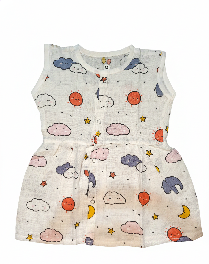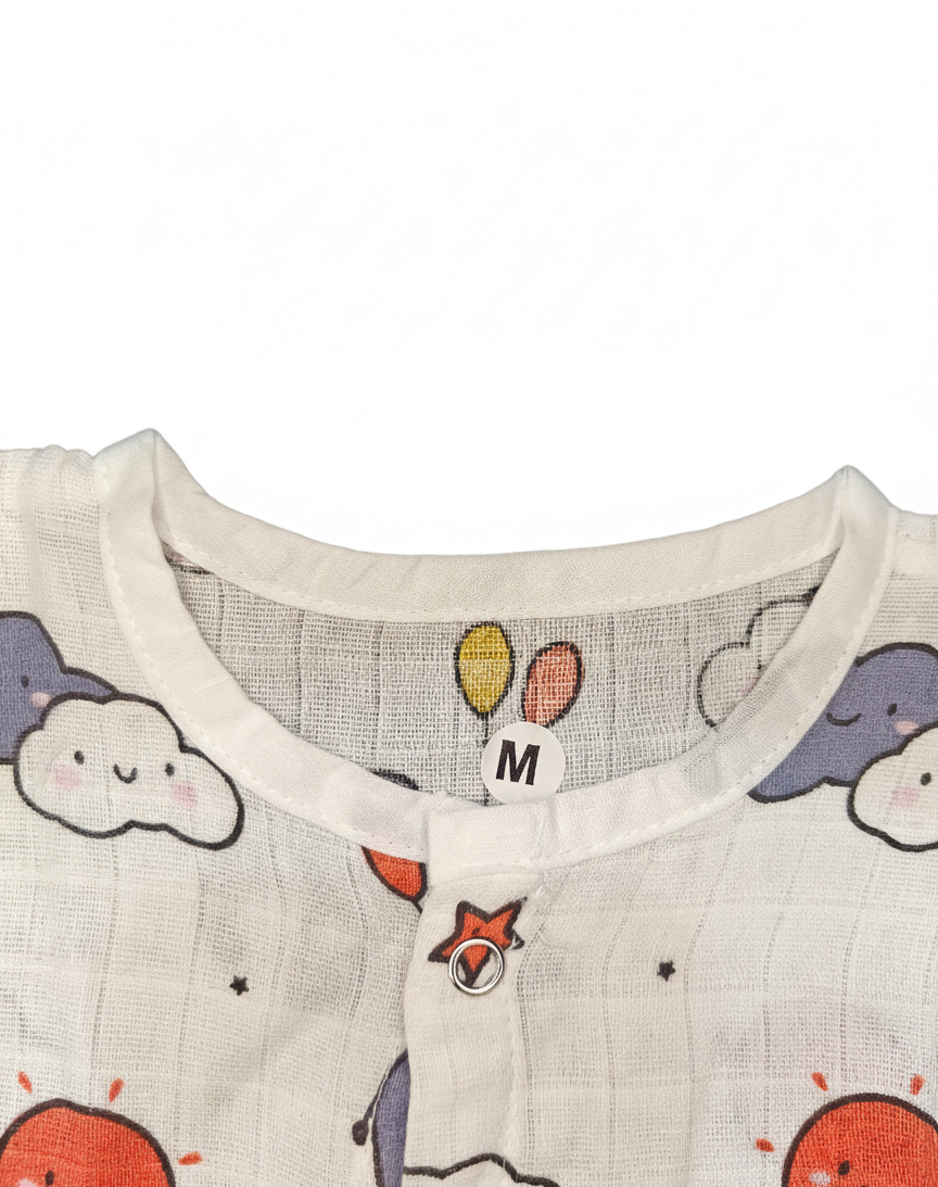Gentle muslin cloth featuring cloud and elephant pattern, designed for breathable comfort.