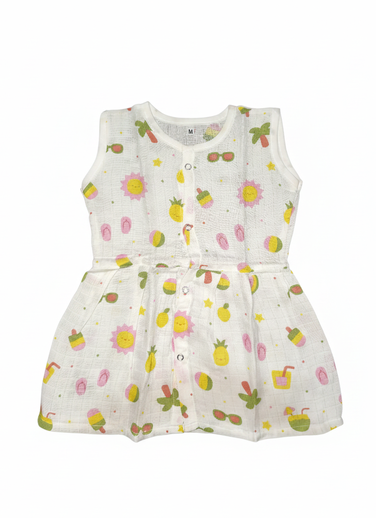 Baby Girl Muslin “Front Button” Cloth with Sun & Ice Cream Pattern