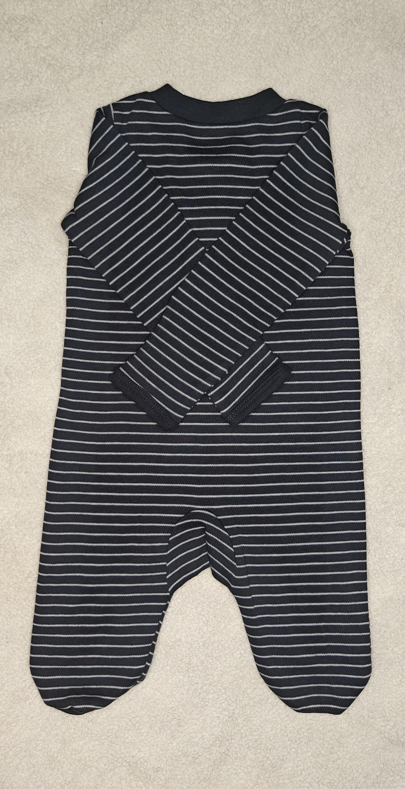 Safety Tab: A small fabric “cuddle tab” at the neckline protects baby’s chin from the zipper.