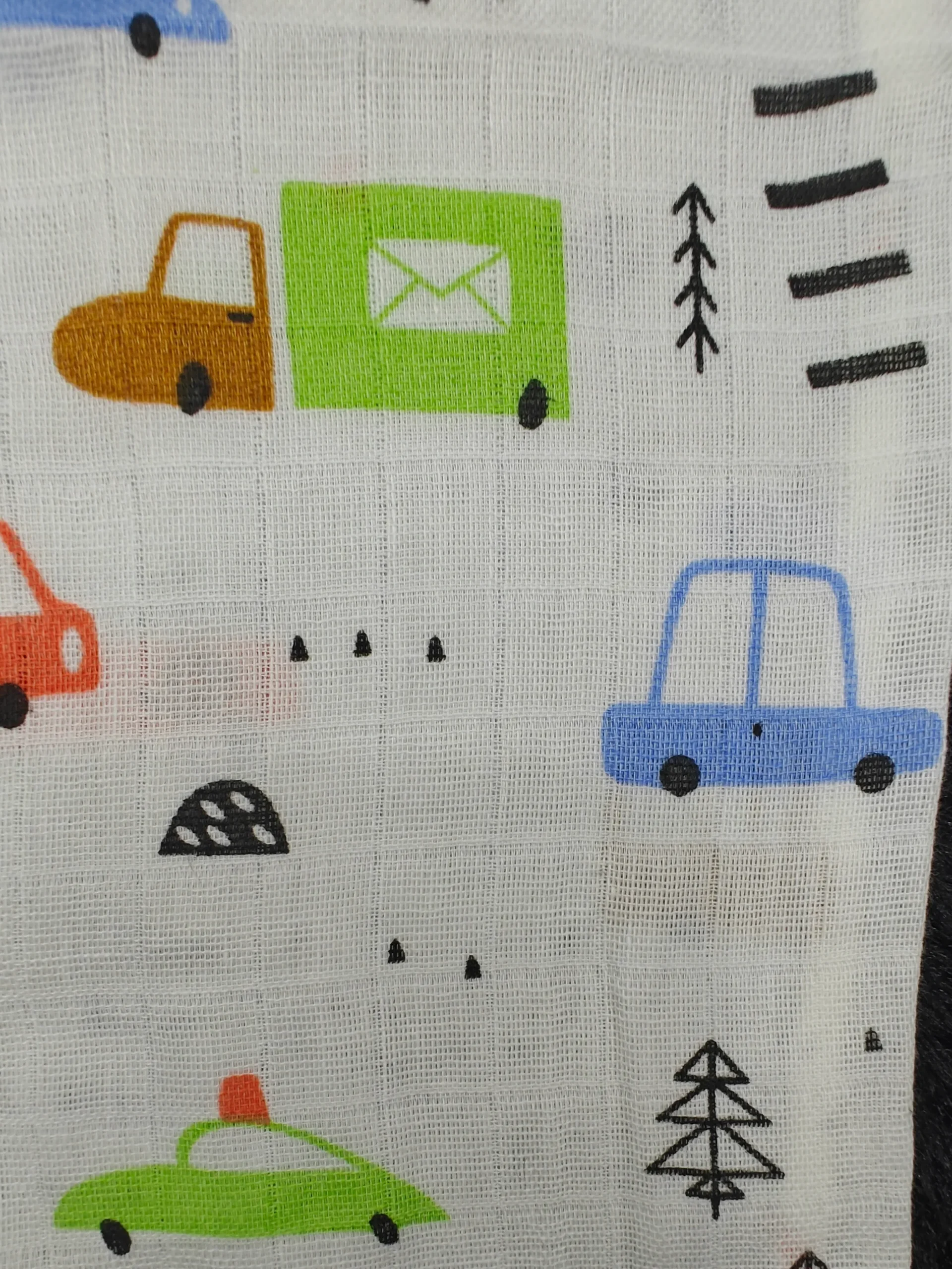 Soft muslin cloth with fun car and truck prints, perfect for daily baby essentials.
